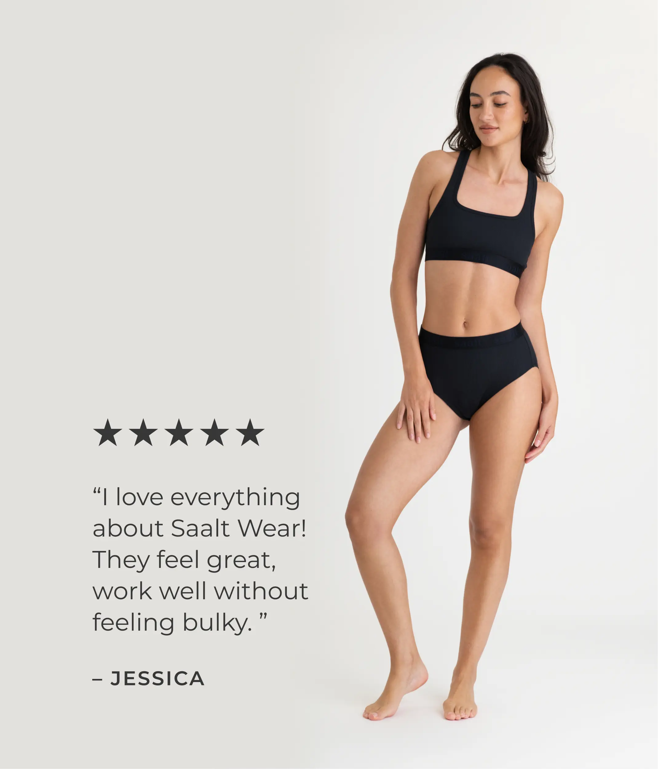 Full coverage that feels anything but basic, this high-rise brief offers a fresh, elevated look that moves with you. Soft ribbed texture in a cotton-modal blend pairs with a smooth logo waistband to flatter every curve. Breathable and seriously soft. Saalt’s patented heavy absorbency gusset has your back(side) covered for your heavy period flow, overnight, or bladder leaks.